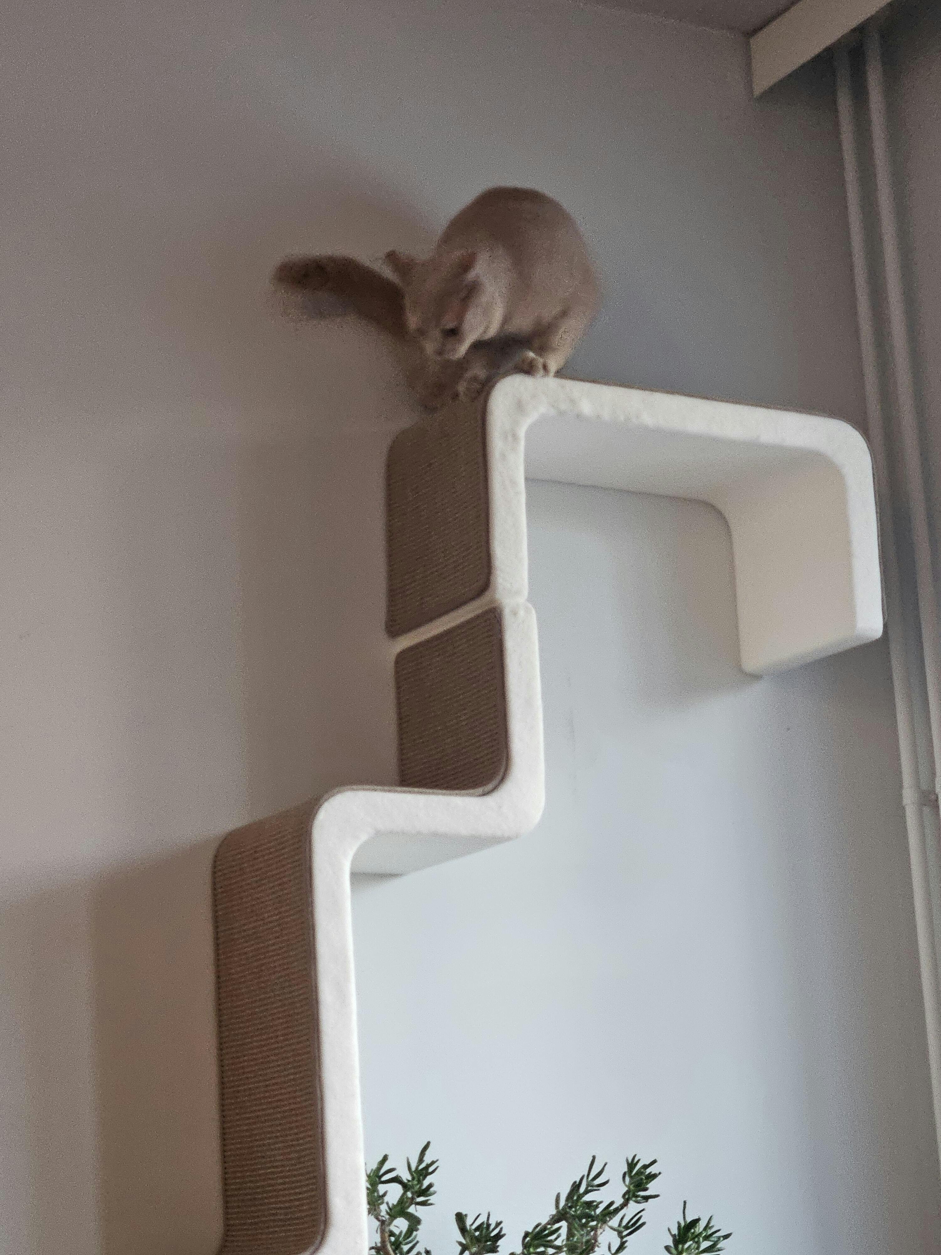 Kissat rakastavat kyseistä kiipeily osiota ☺️ valitettavasti ei pysynyt tapettiseinässä (kuitutapetti) mutta onneksi sain laitettua vielä kiipeily yhdistelmän maalatulle seinälle.
